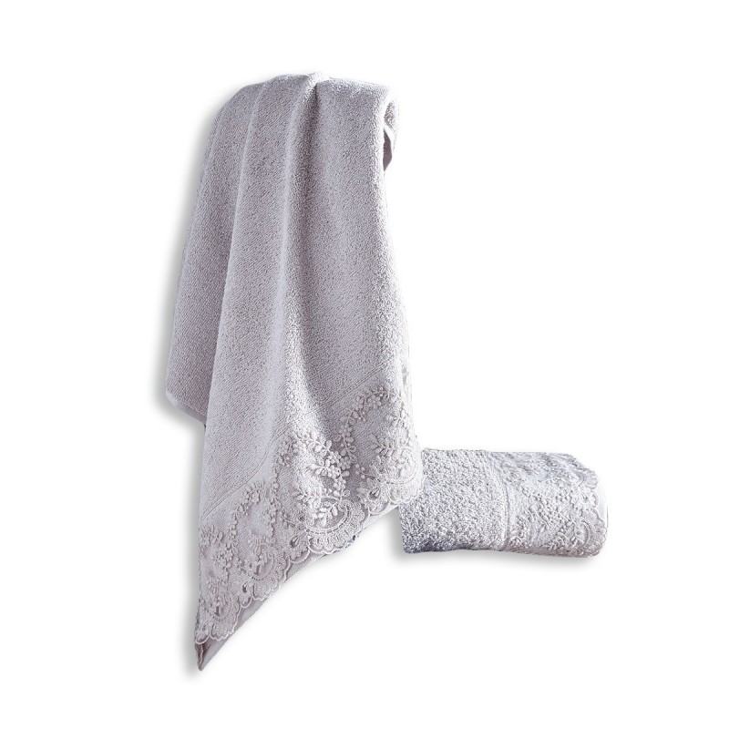 Komplet ręczników frotte ELINDA wykonany z najwyższej jakości przędz bawełnianych i ozdobiony elegancką gipiurą. Odznaczają się wyjątkową miękkością i doskonałą absorpcją wody. Są odporne na ścieranie, nie blakną i nie elektryzują się. Ręczniki są łatwe w konserwacji i nie wymagają prasowania. Komplet składa się z dwóch ręczników w jednakowych kolorach zapakowanych w ozdobne pudełko. Skład: 100% bawełna Gramatura: 450g/m2 Skład kompletu: 1x50x90 + 1x70x140 cm Kolorystyka zdjęć produktów może nieznacznie odbiegać od rzeczywistości