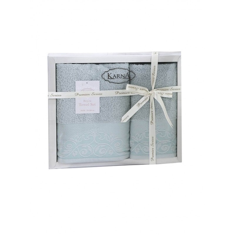 Komplet ręczników łazienkowych frotte BEYZA wykonany jest z wysokiej jakości przędz bawełnianych. Odznaczają się wyjątkową miękkością i doskonałą absorpcją wody. Ich wyrafinowany charakter podkreśla delikatna bordiura i luksusowy haft. Są odporne na ścieranie, nie blakną i nie elektryzują się. Ręczniki są łatwe w konserwacji i nie wymagają prasowania. Komplet składa się z dwóch ręczników 50x90 i 70x140 w jednakowych kolorach zapakowanych w ozdobne estetyczne pudełko. Jest to idealny pomysł na elegancki prezent. Skład: 100% bawełna Gramatura: 500g/m2 Skład kompletu: 1x50x90 + 1x70x140 cm Kolorystyka zdjęć produktów może nieznacznie odbiegać od rzeczywistości